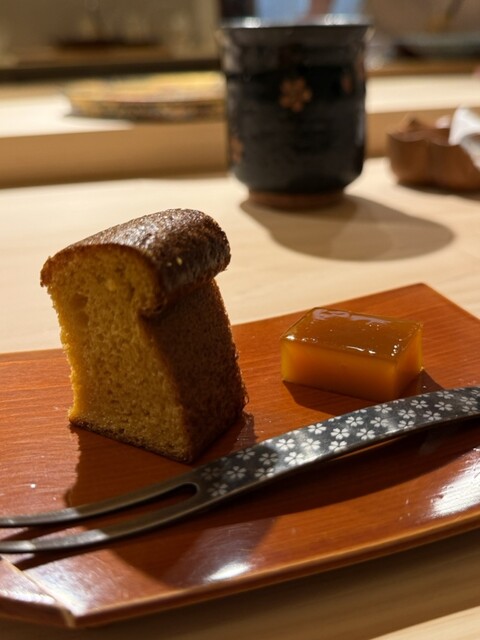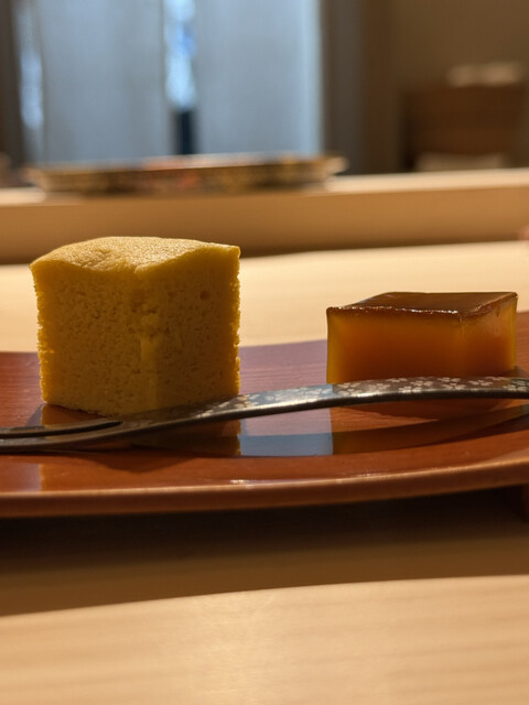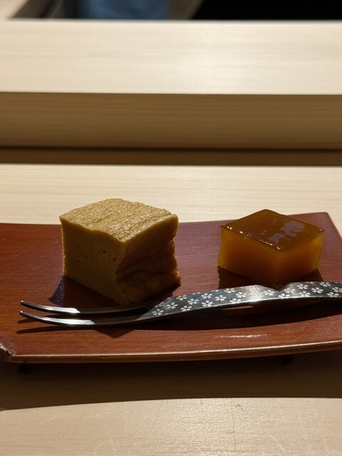 お酒はいつも通り、諸さんのワインペアリングをお願いしましたが、今回も驚きと発見の連続。鮨とのマリアージュの可能性を広げてくれる奥深さに改めて魅了されました。さらに、食後の選べるデザートが以前の2種類から3種類に増えていたのも嬉しかったです。大将と諸さんのKPもありがとうございました。