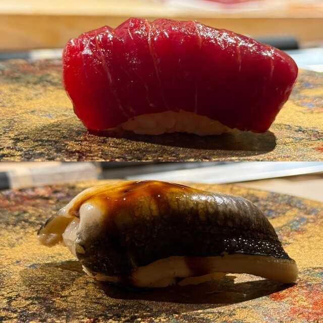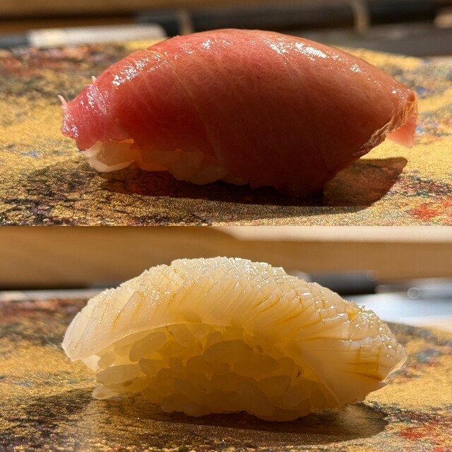 握りももちろん圧巻の一言。中とろ、大とろ、赤身漬けと続くマグロの世界は言うまでもなく、新仔小肌の美しさには息を呑みました。丁寧に皿一面へと並べられた小肌は、もはや寿司を超えて一枚の芸術作品。視覚的な驚きと口に入れた時の繊細な味わいに心を奪われました。