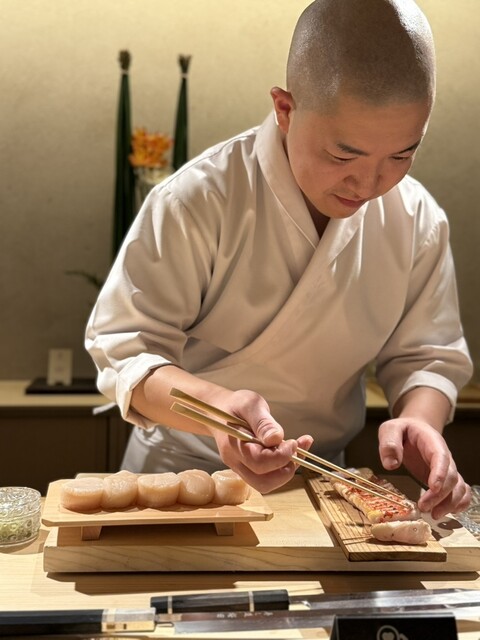 焼き物や手巻きなど、構成にも緩急があり毎度の事ながら飽きる瞬間がありません。特に手巻きは香ばしい海苔と炊き立てのようなシャリの温度が印象的でした。大将や諸さんの温かな所作も加わり、緊張感の中にも居心地の良さがある空間。季節の食材と丁寧な仕事を堪能できる、何度訪れても新たな感動を与えてくれる一軒です。ご馳走様でした。