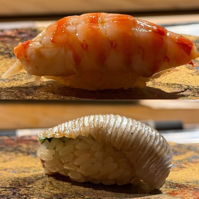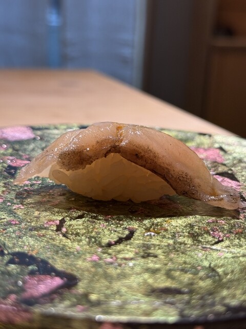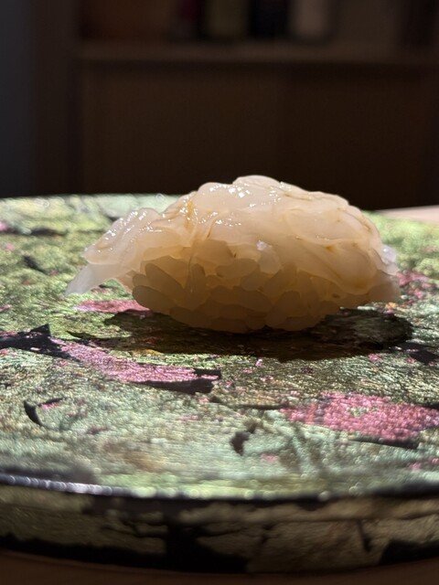 東京に引越してから初めての桜田さんへ。旬の蛍烏賊をはじめとする季節の食材が素晴らしく、変わらぬ丁寧な仕事に感動しました。この日の海老は珍しく車海老ではなく、宮城県産のぶどう海老。握りはもちろん、定番の海老煎餅もぶどう海老で、いつもと違った新鮮な味わいが楽しめました。そして、諸さんによるワインペアリングも相変わらず絶妙で、繊細な寿司の味を一層引き立ててくれます。一貫ごとにワインとの新たなマリアージュを発見できるのが本当に愉しく、食の喜びを実感する時間となりました。やはり桜田さんは何度訪れても心躍る名店。来月の予約が今から待ち遠しいです。ご馳走様でした。
