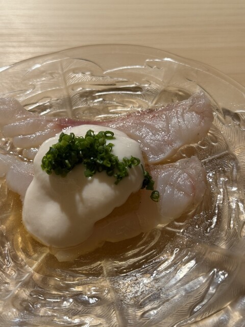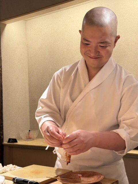 挨拶代わりの出来立てのシャリから始まり、風間水産の白身の刺身は淡雪のように繊細で、塩や柑橘でそれぞれの旨味を引き立てる構成。その後供される煮物椀は、だしの透明感と魚の旨味が見事に調和し、胃も心も整えてくれる一品でした。握りでは、しっとりと余韻のある鯛、旨味を引き出した鮪、身の張りと甘みが際立つ海老など一貫ごとに表情を変えながらも芯に一本通った品の良さが感じられます。シャリは赤酢の酸味が柔らかく、米の粒立ちと温度管理が絶妙。ネタとの一体感を大切にした握りで、口の中で自然とほぐれていく感覚が心地よいです。