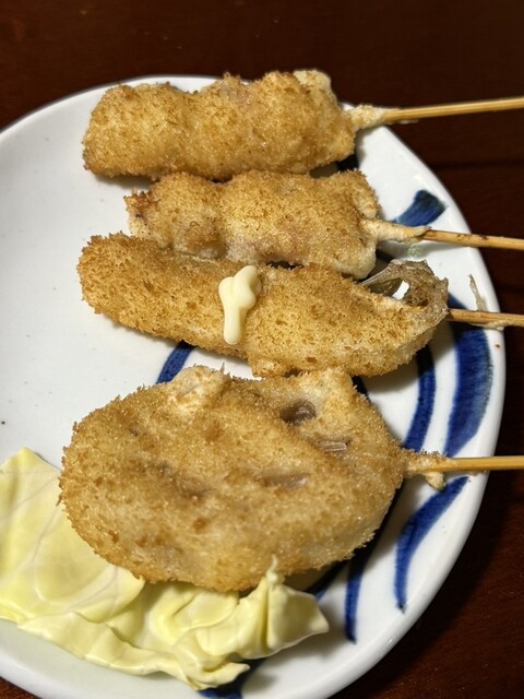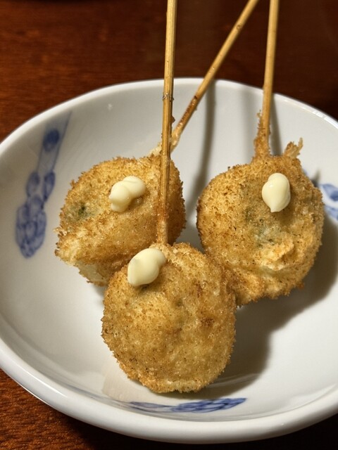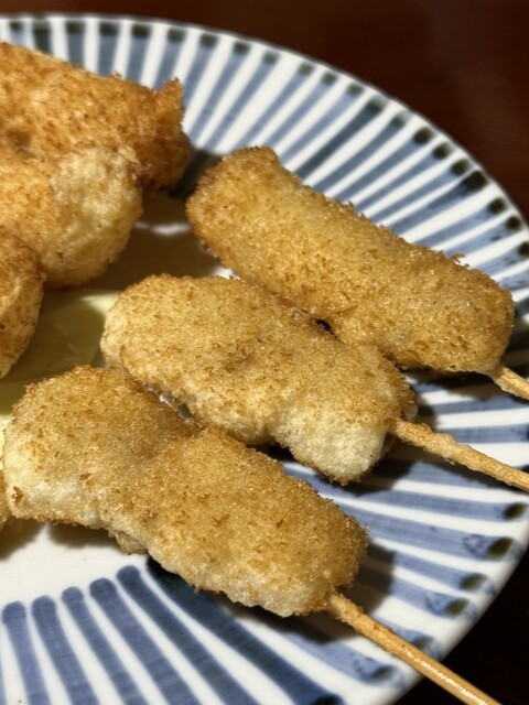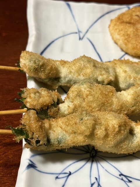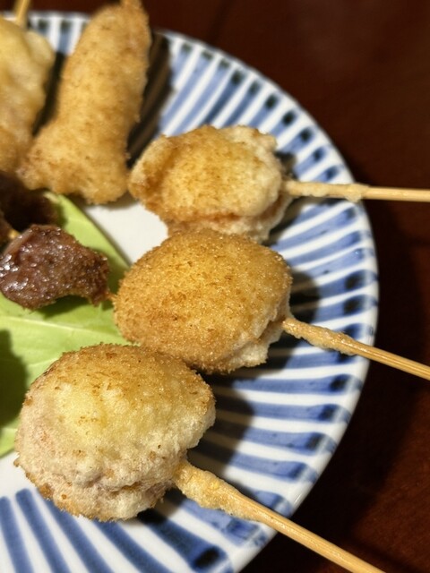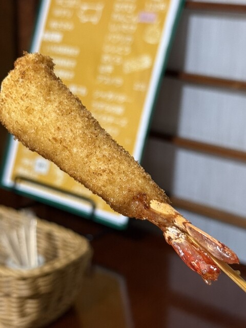 こちらの串揚げは、軽やかな衣と絶妙な揚げ加減が特徴で、サクッとした食感の後に、ジューシーな具材の旨みが広がります。昔から特に大好きなのはたこ、砂ずり、キス、プリプリのエビです。他にも旬の野菜串など、バリエーション豊かで全てが美味しいです。