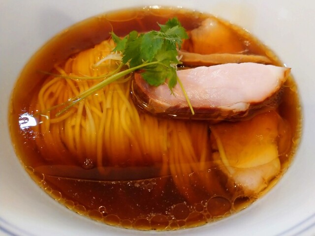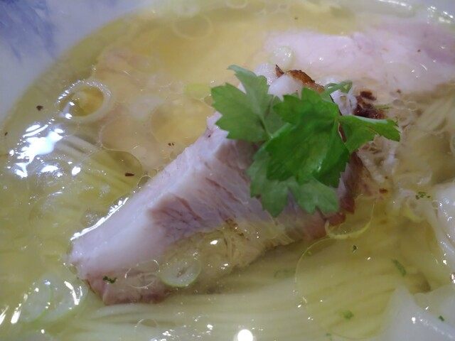 澄んだ魚介ベースのスープ、”研ぎ澄まされた”という表現があっていると思います。広く、深い味わいに遠くから柚子の香りがし、ネギをベースとした香油がコクをもたらし、抜群の塩梅ですべてが調和しています(*'ω'*)…気絶しました。細めのストレート麺は柔らかめで素麺に似た食感で、小麦の風味と旨みが味わえます。そして何よりも自己主張がなく、スープと調和している点が秀逸です。隅々までに気が配られたラーメンで、流石の一言です(*'ω'*)