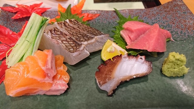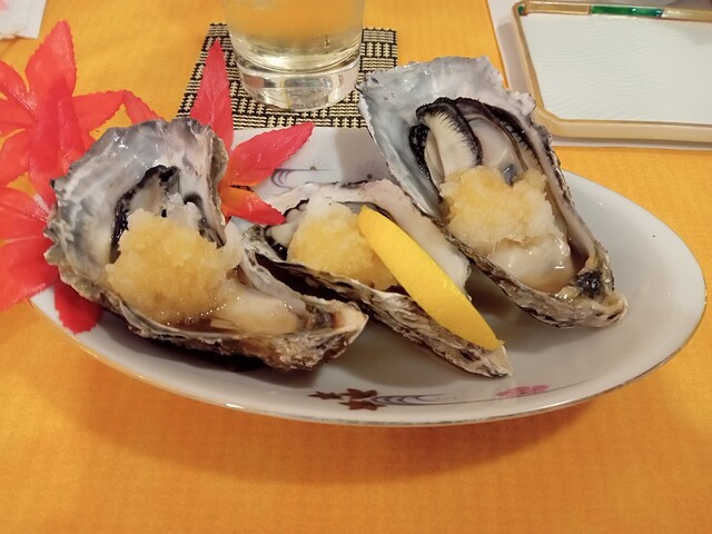 今回も大将におまかせで料理を出してもらいました。刺身の盛り合わせから始まり,牡蠣のバター炒め,金目鯛の焼き物,イカの焼き物,サーモンの軍艦,海鮮丼,汁椀とたくさんいただきました(^^)。どの料理もおいしくて,いい時間が過ごせました。カウンターにおられたお客さんとも楽しい話ができて,居酒屋の良さを改めて知りました。