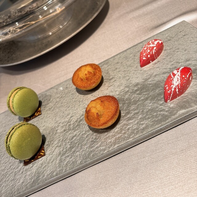 ミニャルディーズとしてピスタチオマカロン、フィナンシェ、チョコレートが提供。うーんこれはどれも普通に美味いって感じかな。
