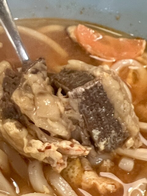 デッカいカルビの塊が鎮座するうどんは