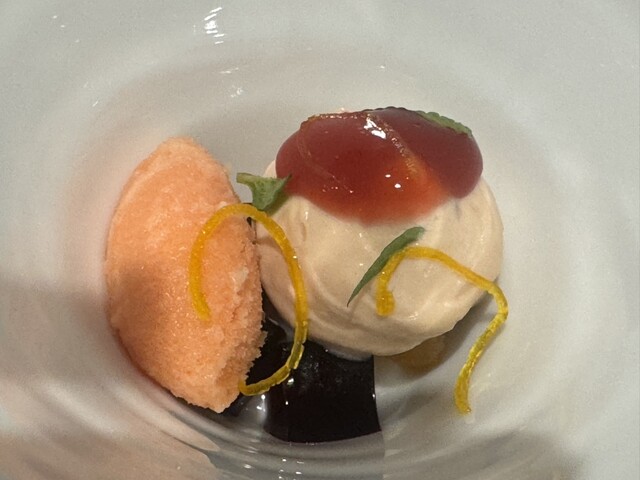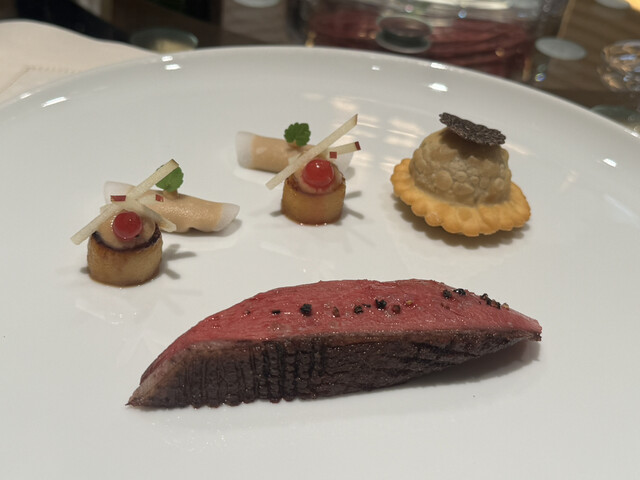 三年ぶりに、ロオジエ。自分や、良くご一緒するメンバーが、入院、体調不良でなかなかチャンスが無く、本当に久しぶり。今回は、同行するはずだった、一人が前日に、インフルでダウン。急遽息子を代役に立てて訪問。自分が好きな店は、約束はなんとしても、守ります。それが、自分のルール。相変わらず、入った瞬間から、気持ちが高揚し、否が応でも、ロオジエに来た喜びを噛み締めます。いつものように、今日の予算、どのくらい飲むかを伝え、おまかせします。成金ではないので、すごい金額を使う訳ではないですが、あまりケチケチもしたくありません。妥当だと思う金額を提示します。でも、その少ない予算の中で、上手にアレンジしてくれるのが、この店のサービススタッフのすごい所。本当に、日本一のサービスだと思っています。肉だけ、魚だけを食べたければ、そういう店に行った方が良いと思います。一つの料理に、沢山の食材、多種多様な調理法を組み合わせて、オーケストラのような、一品に仕上げるのが、調理スタッフの腕の見せ所。毎回、そのアイデアに、感服します。それに合わせるワイン。生きている喜びを、感じます。明日から、また頑張ろうと思います。兎に角、脱帽な美味さです。ご馳走でした。