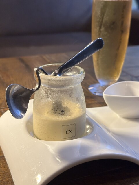 一口目はキャビアと、二口目は甘いカラメルソースと、三口目は赤ワイン塩でいただいたのだけど、プリンだけでもめちゃくちゃ美味しいから最後は素プリンを楽しんでました♪