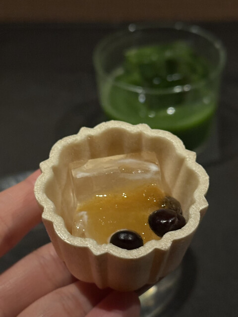 →茶銘「麓の白(ろくのしろ)」の抹茶と柑橘系の爽やかなカクテルは、旨味と酸味と苦味のバランスが良くてとても飲みやすかった。