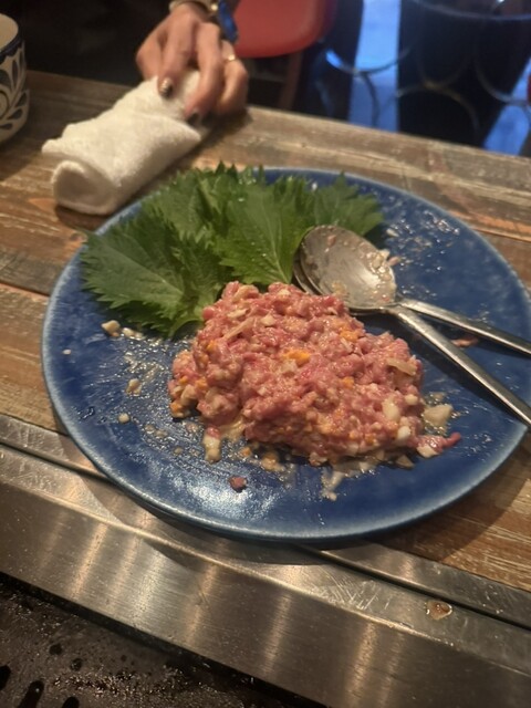 前回このアシスタントと伺った時に、3人中2人が大絶賛の焼かない黒毛和牛の生ハンバーグ、今回も大好評。女子からの人気が異様に高い。確かにあっさりしていて食べやすいかも。1人、玉ねぎ苦手と伝えると、別皿で玉ねぎをくれた。お気遣いありがとうございます。