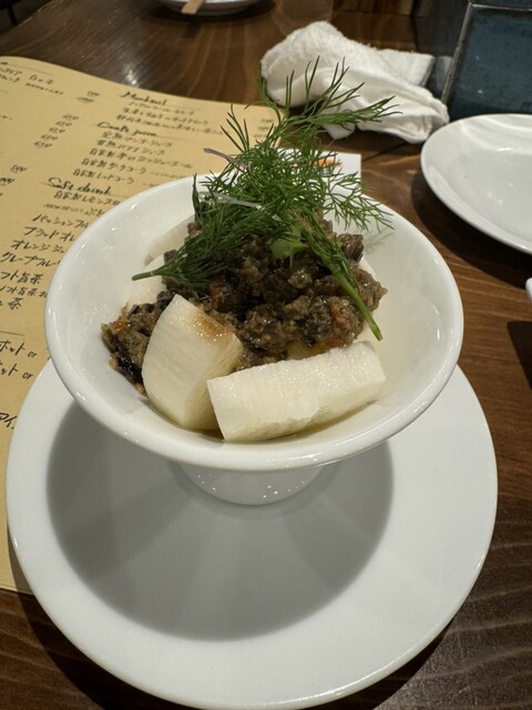 西洋ネギ「ポワロー」のロースト、今回の金メダル。トロットロのネギが美味すぎる、ネギってこんなに美味いか、ホント最強。久しぶりに食らった。酒のあての最高到達点みたいな。店員さんにこれ美味い言ったら本日からの限定販売だとか。めっちゃ得した。