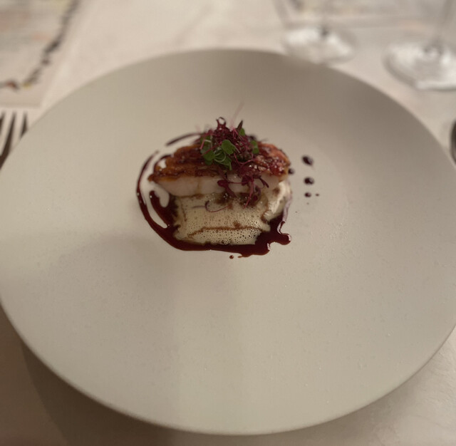 これは衝撃的な美味しさでした。ホタテ貝のムースと白イカの柔らかさと旨みが恐縮したブイヤベースのソースにイチコロです。