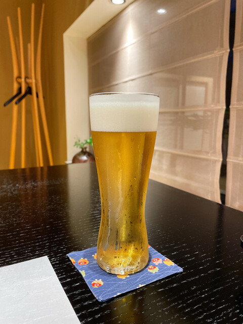 うすはりのビアグラスが、口元心地良く美味しい泡のビール。