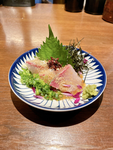 胡麻かんぱち、角の立ったかんぱちと香ばしい胡麻ダレが良いですね。