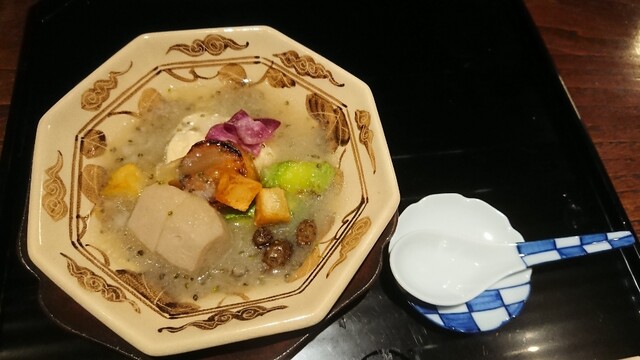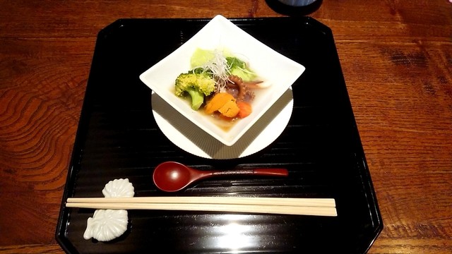 秋らしい一品から、豆乳ベースのソースに季節の野菜の盛り合わせ。
