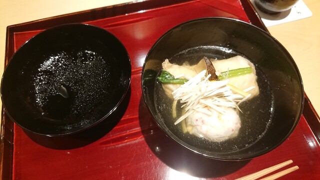 亀甲蕪にえびのしんじょうと、食材自体のうまみを引き立てるのにこのだしのおいしさには感激します、だしが味の要だということがよくわかる一品です。