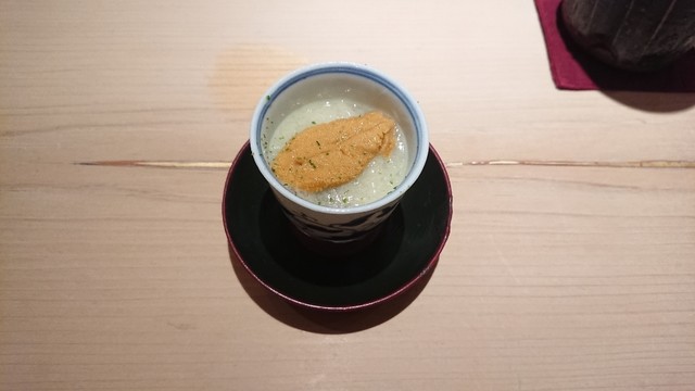 北海道と九州の両極の雲丹を使用しており、食べる前に大将が、まるで遠距離恋愛の味がするよとギャグをかましてきました笑