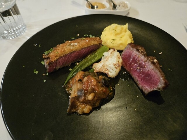コースを選択。前菜やパスタ何点か選択箇所がある。とにかく美味おもろい味付けに乗せた肉料理がたくさん出てくるだけのコースだった。