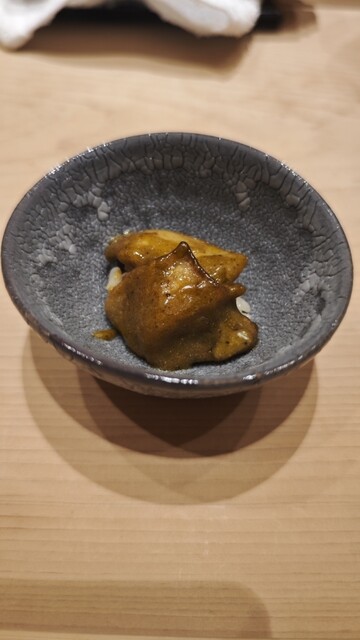 蟹の香りがすごく強くて、毛蟹を堪能しました。下に卵があるとは思わず上から食べ始めたので、最後に卵しか食べられなかったのが残念でした。店主は料理名だけを教えて、それ以上の説明はありませんでした。