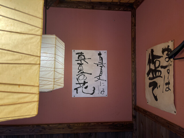 お店の看板や暖簾、おすすめメニューや節気は書家の大門翠鵬先生の書です。