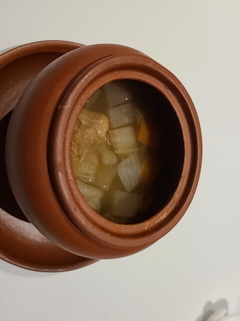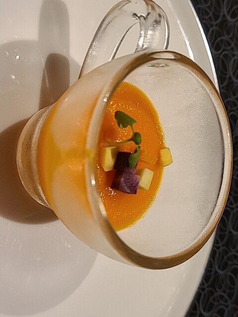 4品目は野菜のブイヨンを楽しめるスープ。ほんとに凝縮されたブイヨンに僅かな塩だけの味付けでめちゃくちゃ優しい味。