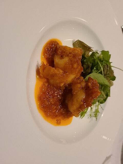 1品目はオール人参ですし、2品目の前菜の盛り合わせもお肉は愚かシーフードすらありません。そして3品目の点心ですがここでやっとエビが出てきます。