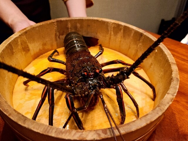 6品目にとうとう伊勢海老の登場です。エビの身も美味しいんですが、食べ終わった後に、1番美味しいところを紹介してくれました…(笑)