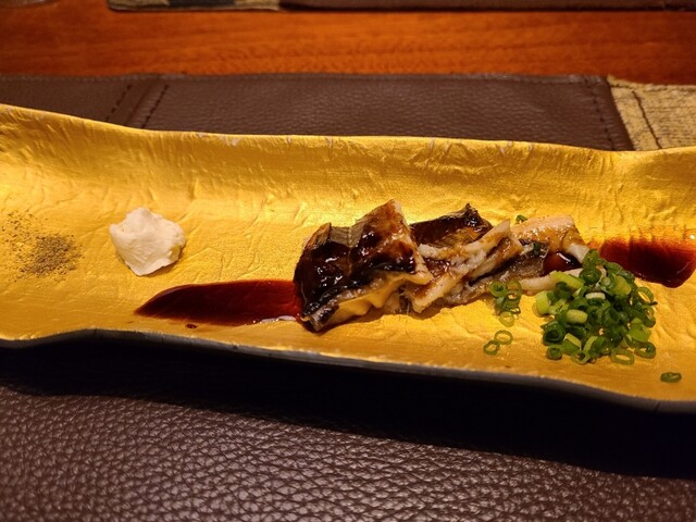 2皿目は焼き鱧と雲丹。鱧は淡白な印象があったんですがこちらで頂いたのは焼きの香ばしさも相まってか、今まで食べた鱧の中でわかりやすく美味しいって感じた1品でした。ウニはこれぞウニという濃厚な甘さがたまらないですね。