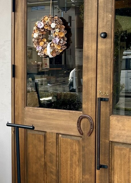 お店の入り口ドアの中央に、お馬さんの蹄鉄を飾っておられます