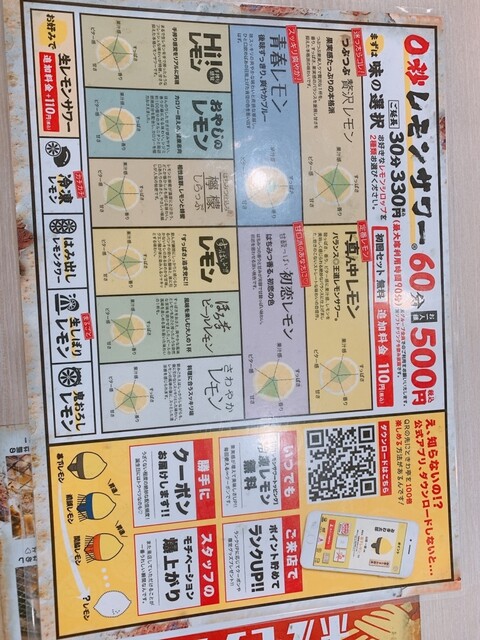 そして2杯目からはレモンサワーにシフトです。60分500円で飲み放題、+300円で30分延長、2種類のレモンシロップ付きと言ったルールです。