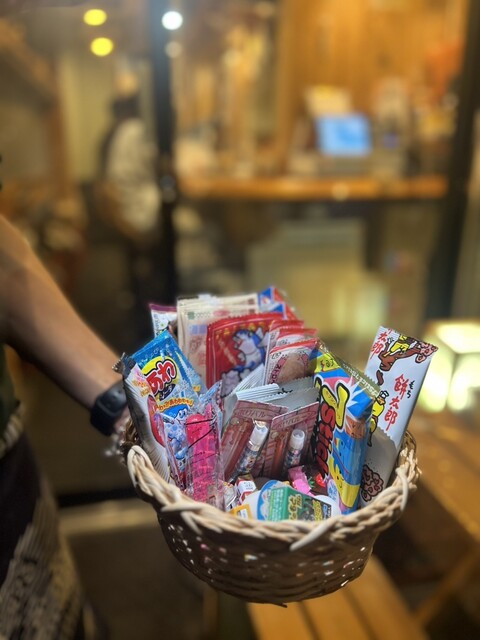 帰り際に店頭で昭和な駄菓子も頂き、お店を後にしました。居酒屋さんの域を超えたかなり本格的なシェフの技と、質の良い食材を味わえました。