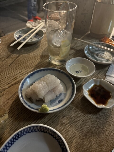 特に美味しかったのはハモ!これは目の前の炭火で炙ってくれ絶品。さつま揚げもたまらない美味しさ!