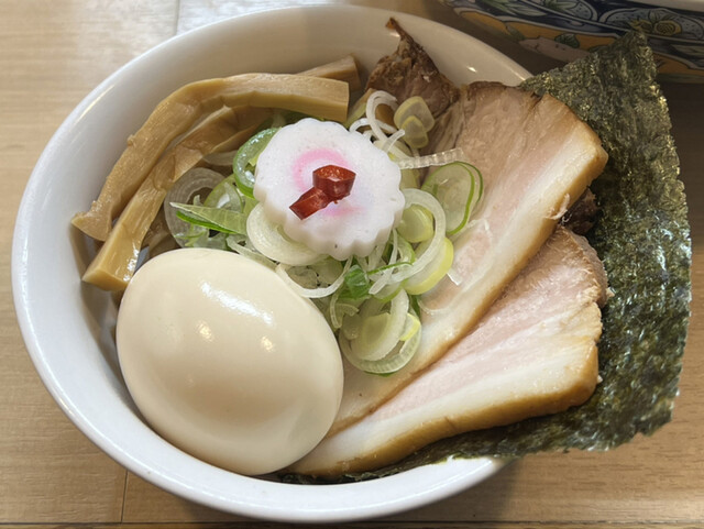 出汁は豚や鶏の動物系に魚介や昆布、椎茸等の和出汁と思われますが、動物系が密かに土台を支えつつも和出汁の風味を前面に押し出した味わいです。