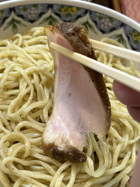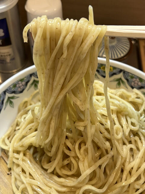 また、スープには鶏油らしき香味油が浮いているものの、先日戴いた「豚鴨つけそば」に比べて油分を若干低めに抑えている気がします。
