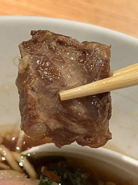 一方、角煮は蕩けるほど柔らかく煮込まれていて、噛み締めると滲み出た甘辛な醤油ダレの風味と共に豚のコラーゲンの甘味が舌に存分に伝わります。
