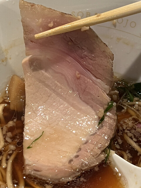 先ずはスープを飲んでみると、極自然な甘味を帯びた白醤油の風味と共に、豊潤でいて雑味の無い出汁の味わいが口の中に広がります。