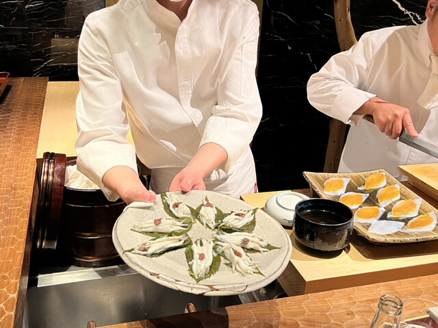 淡白な白魚に桜の葉の香りが乗り移る事で、味わいに鮮やかでいて清々しいアクセントを与えています。