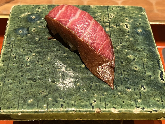身は柔らかでいて充分な張りを保っていて、微かな酸味を帯びた煮切り醤油の風味と共に上質な鰹の旨味が舌に存分に伝わります。