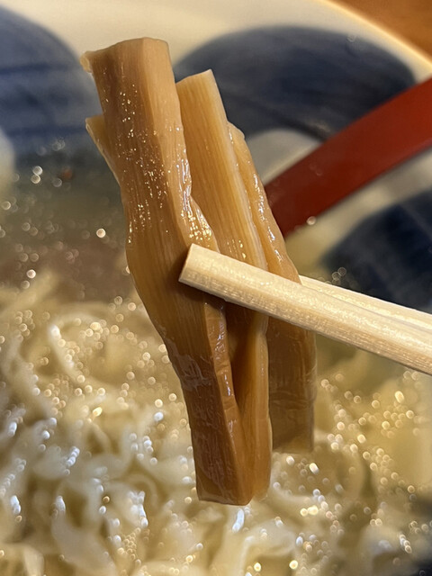 そして、平打ち麺にはスープが潤沢に絡み込み、噛み締めるとスープの塩味が背景となって小麦の甘味が一段と鮮明に浮かび上がります。