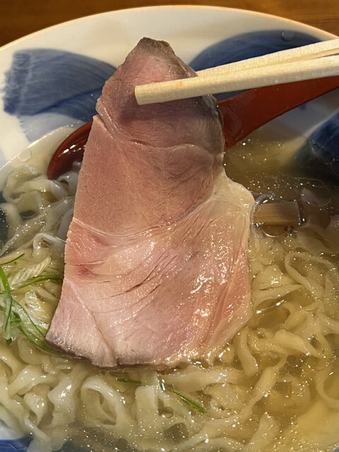 先ずはスープを飲んでみると、穏やかでいて輪郭を帯びた塩味と共に、様々な旨味が折り重ねられた出汁の味わいが口の中に広がります。
