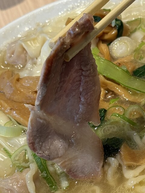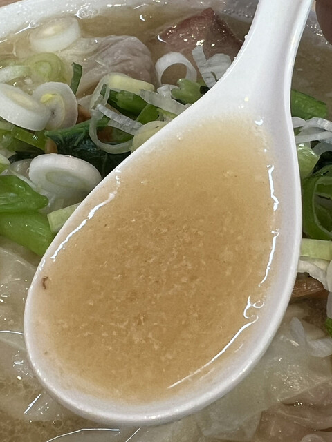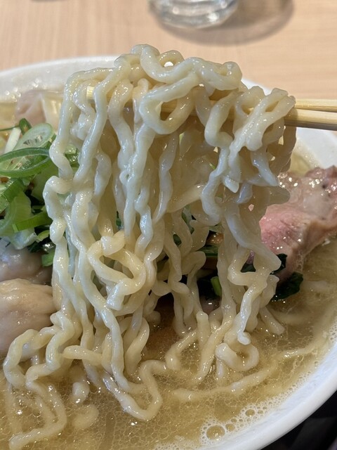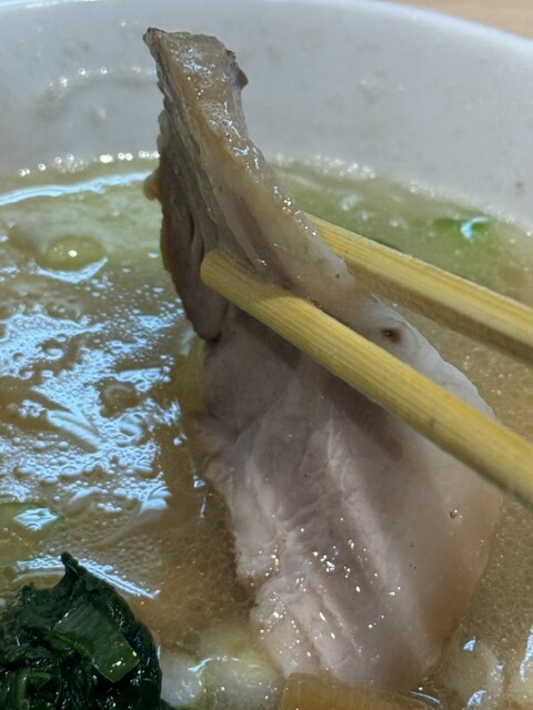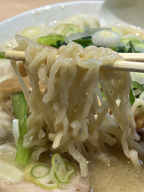 先ずはスープを飲んでみると、前回に比べ塩味の輪郭や白胡椒の風味が増していて、尚且つ前回までは希薄であった魚介の存在感が一段と際立っている印象です。