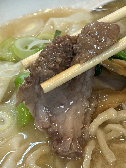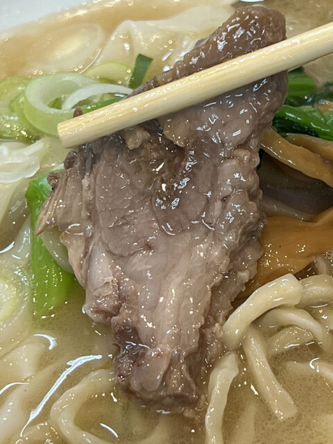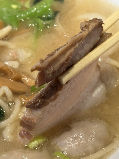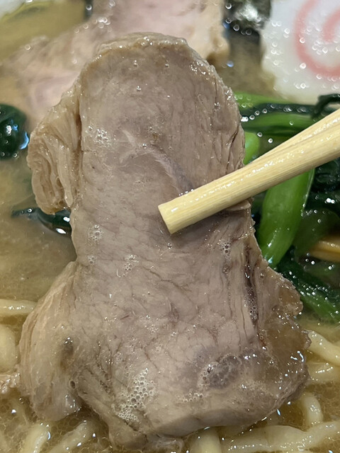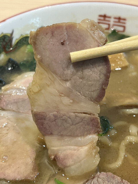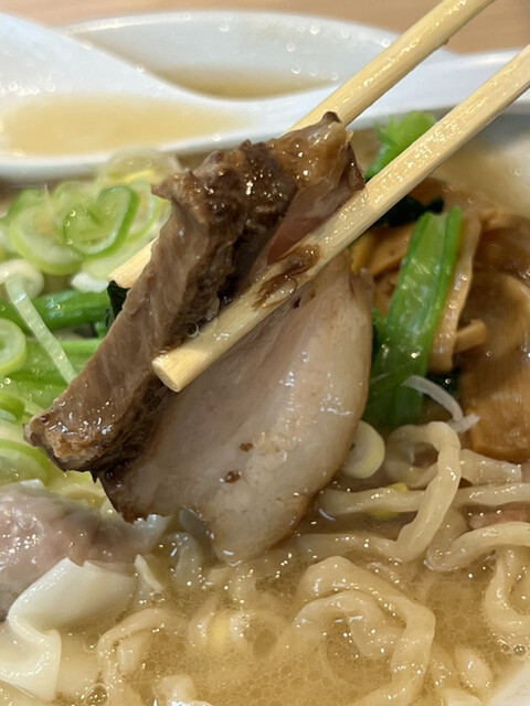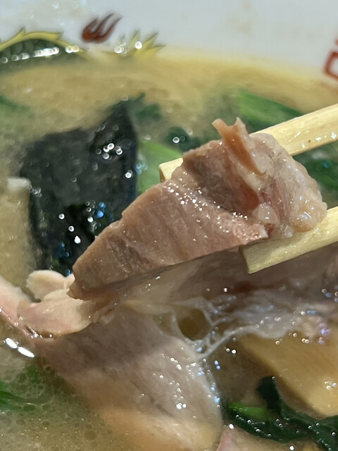 一方、今までは全てのチャーシューが焼豚でしたが、今回は密かに1切れのみが煮豚に変更されていました。