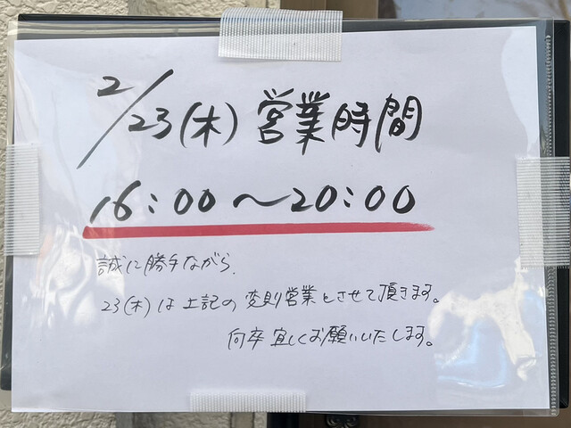 この日も16時30分からの変則営業であり、開店50分前に到着すると既に3名の先客が開店待ちの状況です。