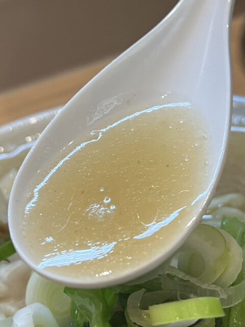 先ずはスープを飲んでみると、適度に効きつつも角が落とされた塩味と共に、重厚でいて奥行きに満ちた出汁の味わいが口の中に広がります。