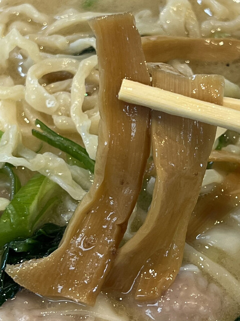 また、豚骨のゼラチン質が出汁の基軸を担う反面、白胡椒の風味が障壁となる事から魚介の存在は相変わらず舌に極めて伝わり難い印象です。