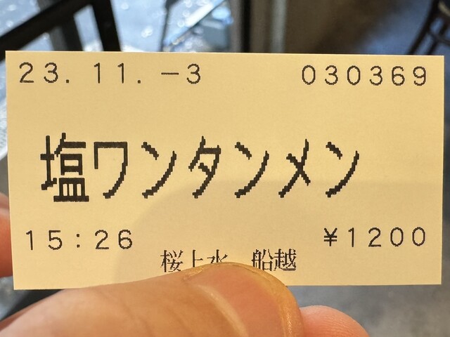 並ぶ事1時間14分で店内に案内され、定番である「塩ワンタンメン」の食券を購入しました。