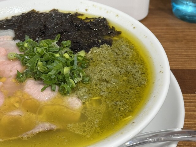 先日「横浜店」で食べた一杯と似通っており、目視で分かる違いはアヒージョが多めな点と油膜が黄色味を帯びている点のみです。