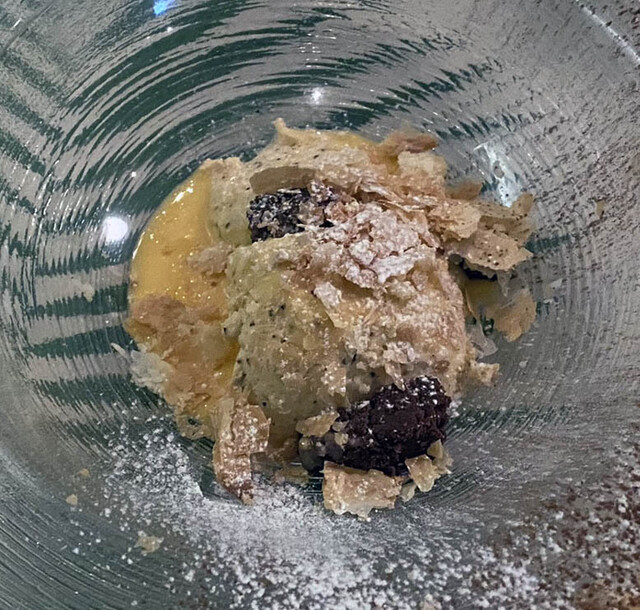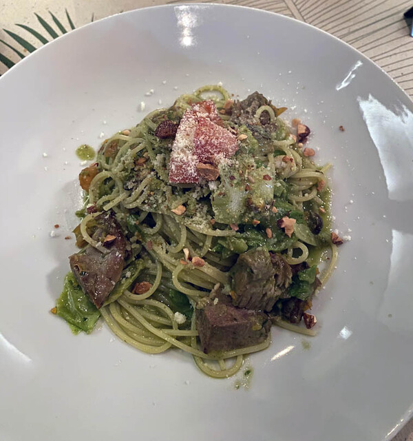 予約して4,000円のディナーコースを夫婦でいただきました。平日だったこともあり、(残念ながら)他のお客さんはなく静かに楽しめました。前菜、スープ、パスタ、メイン、ドルチェとコーヒー。スープはビーツを使ったもので甘く美味しくいただきました。パスタに入っている肉は豚のタンだそうです。メインは地元の鯛(の一種)のスープ仕立ての料理で、焼き具合が最高。パンは自家製だそうでこれもとても美味しかったです。