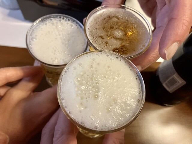 通院中のためお酒は控えめですが、いつもの通り、最初は瓶ビールで乾杯。たまには、小さなグラスで杯を重ねていくのもいいですね…。