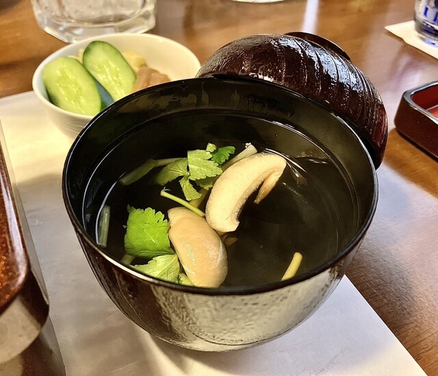 お吸い物には上品なお出汁です。最初は薄いと感じますが、鰻重を食べていくうちに、ちょうどよく感じます。よく考えられているなぁ…。